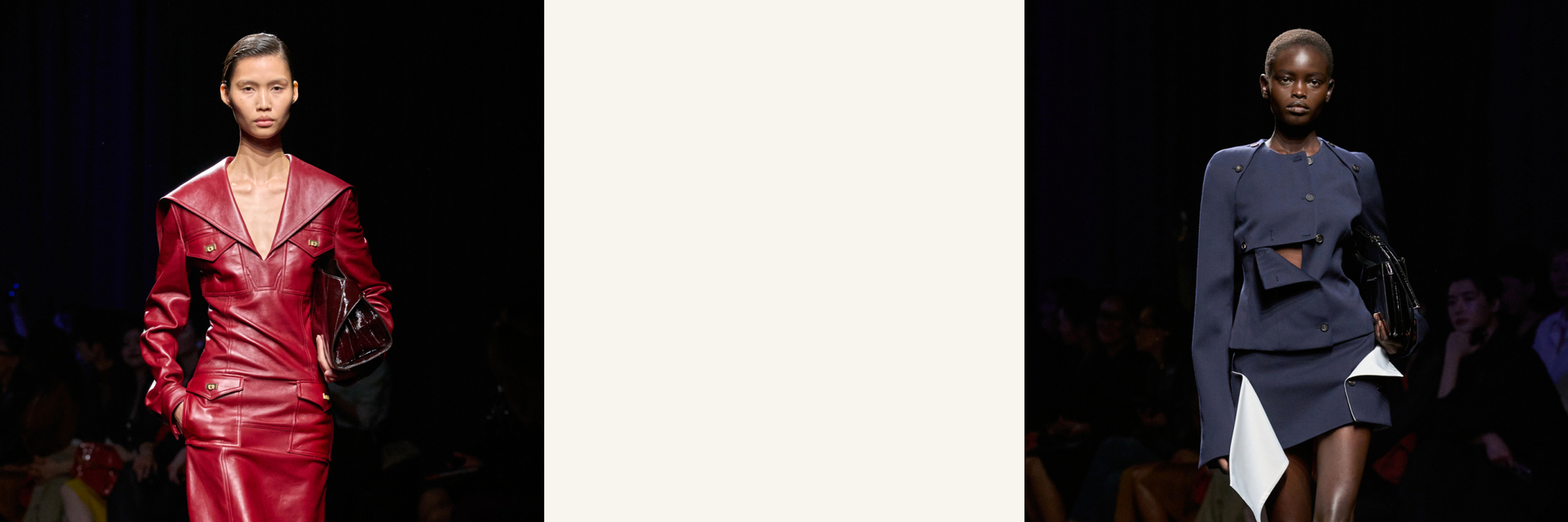 Creative Director Maximilian Davis embraces the after-hours world for Fall ’26, delivering a collection inspired by 1920s speakeasy culture and Jazz Age glamour. Structured, naval-inspired tailoring is offset by sultry, sheer silhouettes that nod to the era’s bold, boundary-pushing women. Among the highlights? The slinky gold lamé and lace slip dress.