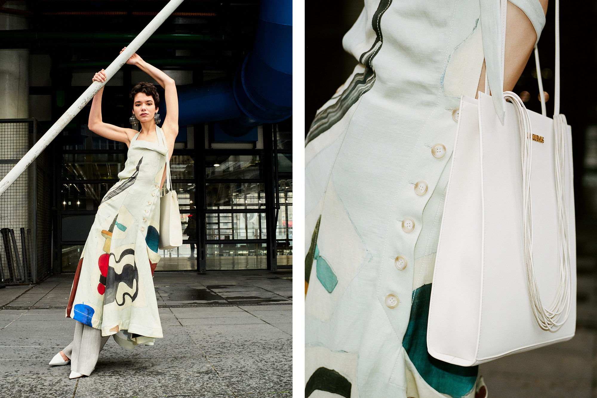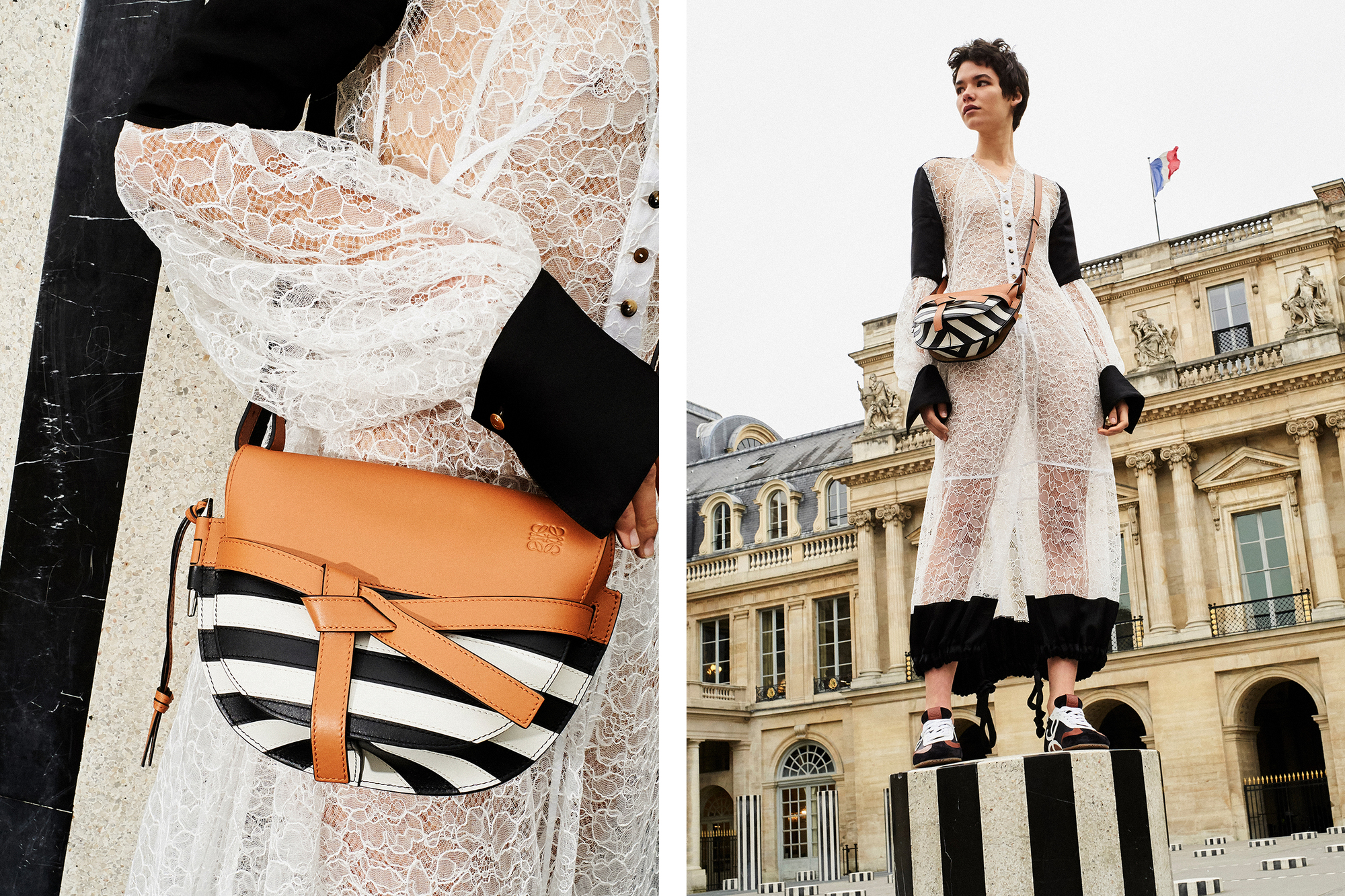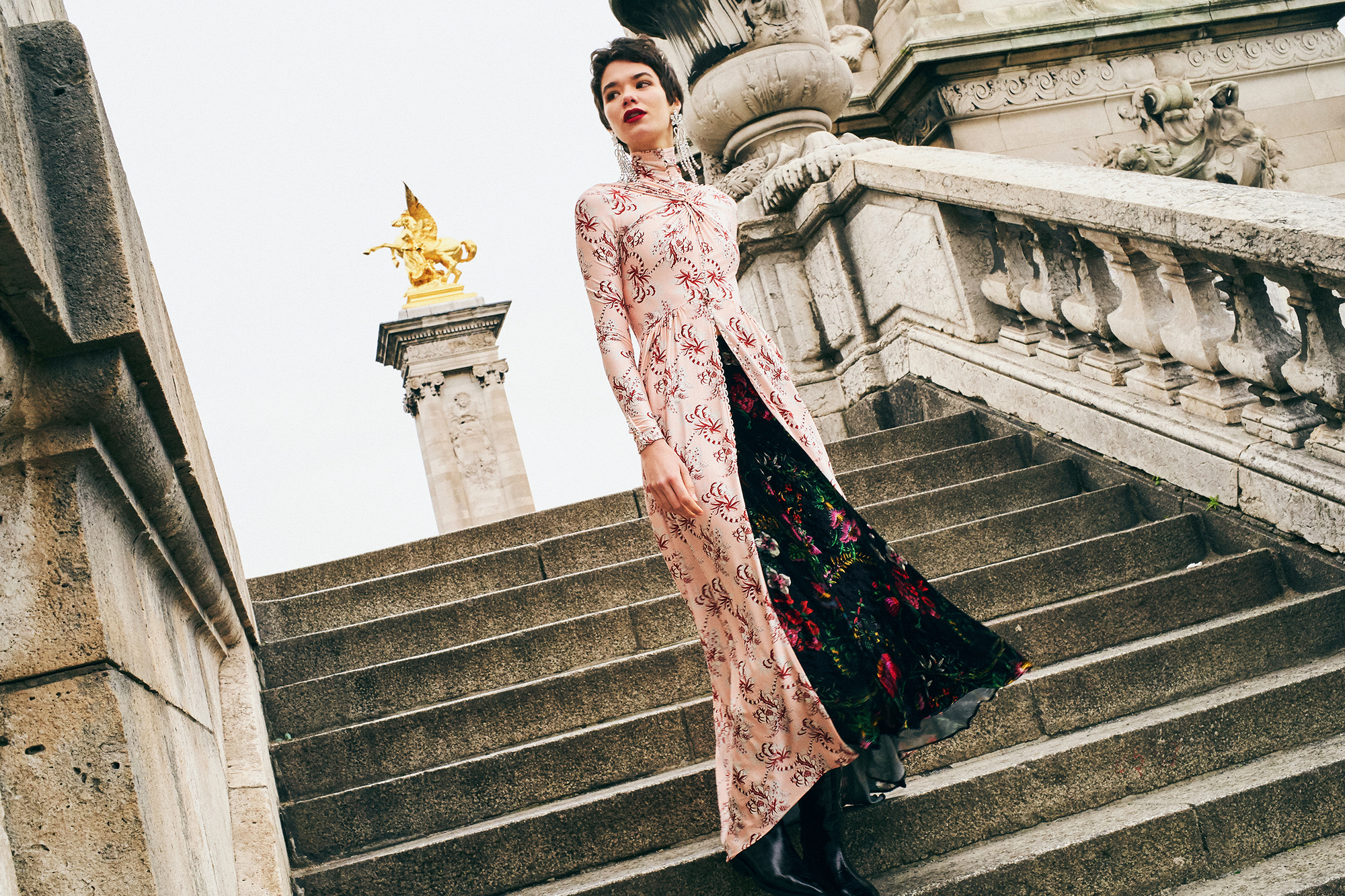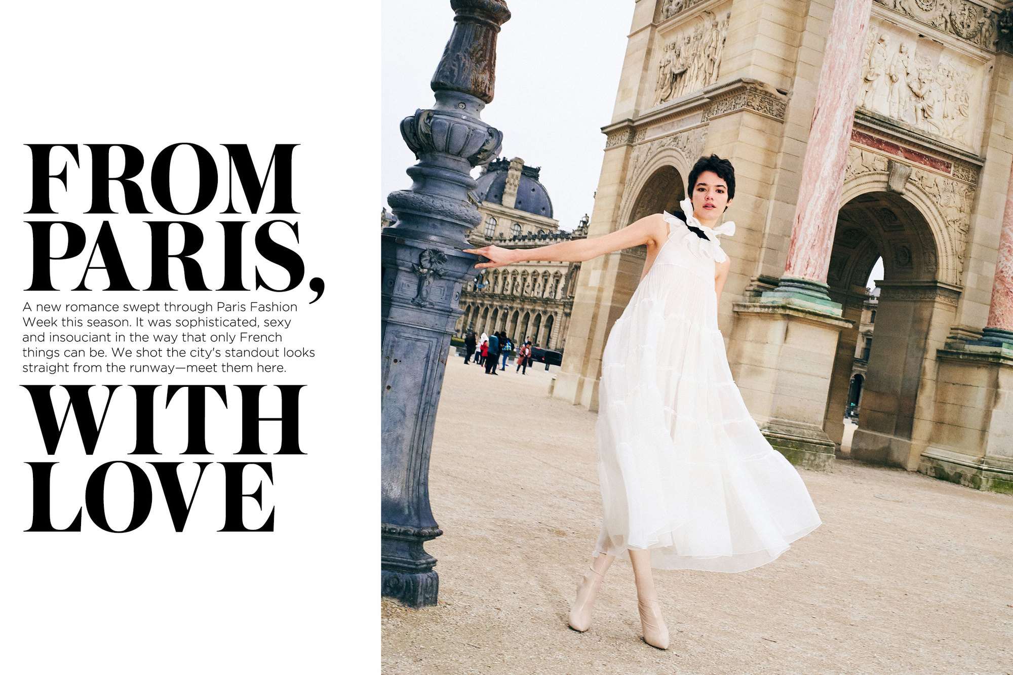 Whisper-thin layers of silk organza reference the Twenties-era couture of Marcel Rochas—and require little more than a leather boot to register a modern cool.