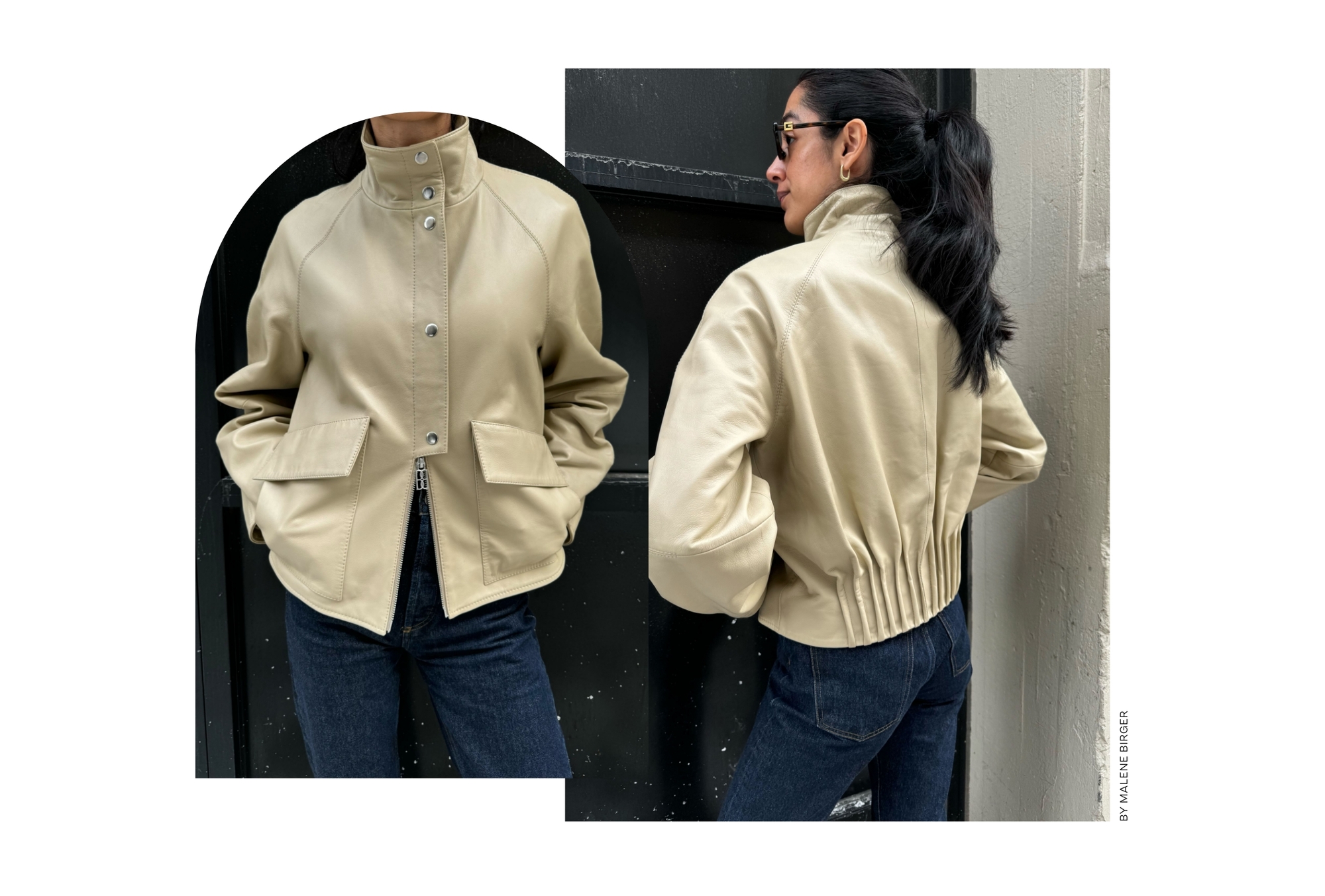 Its supple leather comes in a coolly unexpected shade of biscotti (just the thing to brighten up jeans yet effortlessly luxe over a black dress), it has cinching pleats on the back, and it boasts crucial styling details like silver snap closures, a two-way zip, and pockets you can access from both the top or via an invisible seam at the side. But that’s not all. Its best feature? The funnel neck, now trending—and not going anywhere. Time to get on board (if you haven’t already).