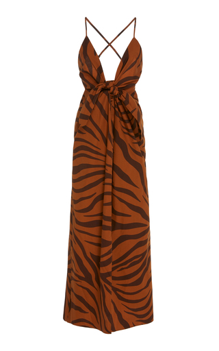 Felicity Tie-Detailed Printed Silk-Satin Maxi Dress